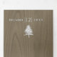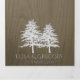 Árvores brancas gravadas em casamento no inverno rústico de madeira de sépia três vezes. Um design rústico de casamento no inverno que mostra duas coníferas brancas em efeito de alivio gravado no cobrir frontal e os nomes do casal em uma fonte decorativa. Uma foto do casal cobrir a parte de fora.