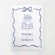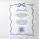 Convite Com Dobra Tripla Blue Hand Drawn Bow QR Code Photo Wedding