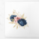 Convite Com Dobra Tripla Blush, Marinho e Casamento Floral Dourado