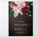 Convite Com Dobra Tripla Blush Pink Burgundy Floral Código QR Casamento de