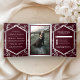 Convite Com Dobra Tripla Burgundy Silver Flourish Swirl Wedding Photo