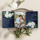 Convite Com Dobra Tripla Casamento Azul com Marinho Floral da Magolia Branc