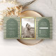 Convite Com Dobra Tripla Casamento com Arca Verde Boho Sage, Quatrefoil Mar