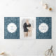 Convite Com Dobra Tripla Casamento com Código QR Católico Azul Vitoriano Du