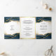 Convite Com Dobra Tripla Casamento com Código QR de Abstrato Dourado marinh