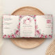 Incêndios para seus hóspedes com este elegante tudo em um convite de casamento com belas rosas vermelhas e rosas rústicas e borboletas bonitinhas com a tipografia moderna. Basta adicionar os detalhes do seu evento neste modelo fácil de usar e adorar este cartão com as suas fotografias favoritas para o tornar um convite único.