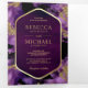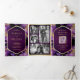 Convite Com Dobra Tripla Casamento de Código QR de Ink Fluida Dourada Roxa