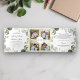 Incêndios para seus convidados com este elegante tudo em um convite de casamento com lindas folhas verdes, design de folhagem com fotos de monograma e estilos de grade no meio e no verso da carta. Basta adicionar os detalhes do seu evento neste modelo fácil de usar e enfeitar este cartão com 5 das suas fotos favoritas para torná-lo um convite único.