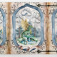 Convite de casamento do estilo conto de fadas feito em uma dobra colorida de água pastel. Fotos bonitas de dragão e castelo aquarela enchem os três lados deste convite de casamento de fantasia triplo. Personalize todos os campos de texto para seu anúncio especial de casamento.