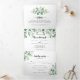 Convite Com Dobra Tripla Casamento de Eucalipto Verde e Caligrafia Minimali