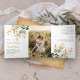 Convite Com Dobra Tripla Casamento de Fotografia do Branch de Folhas Dourad