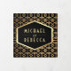 Encontrem seus convidados com este elegante convite de casamento, com um padrão geométrico vintage com elementos falsos de folha de ouro e uma tipografia elegante. Basta adicionar os detalhes do seu evento neste modelo fácil de usar e adorar este cartão com as suas fotografias favoritas para o tornar um convite único.