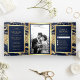 Convite Com Dobra Tripla Casamento de Fotos Azul Marble do Marinho Glitter