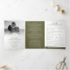Convite Com Dobra Tripla Casamento de monograma RSVP de azeitona verde