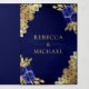 Convite Com Dobra Tripla Casamento do Código QR do Local Dourado Real Blue