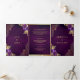 Convite Com Dobra Tripla Casamento do Código QR do Local Dourado Real Purpl