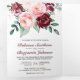 Convite Com Dobra Tripla Casamento do Código QR Floral de Borgonha Cinzenta