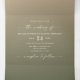 Nomes Simples da Floresta Monstera Verde e Dourado Casamento de Ombre Amarelo Todos em Um Único Convite. Este moderno design mínimo de convite de casamento é simples chic e elegante com um sutil gradiente ombre desvanecido e texto ousado destacando os nomes dos casais. Mostrada na mira da Paleta de Cores de Monstera e Dourado Casamento. Apresenta também uma fotografia do casal no verso. A coleção de casamento do Ombre Bold Names é certamente que torna o seu casamento memorável e bonito! Para ver mais, procure as coleções de casamento de 2022 da Chic Paperie para ver todas as tendências de designs e cores de casamento para este ano.