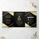Convite Com Dobra Tripla Casamento Dourado de Marble Ampersand, preto moder