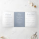 Convite Com Dobra Tripla Casamento Elegante Azul Dusty Monograma Formal