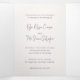 Um convite para casamento elegante triplo com um design simples e clássico com seus nomes em um roteiro moderno e seus detalhes de evento em uma combinação de fontes tradicionais de serifa e itálico.