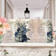 Um convite de casamento elegante, de luxo triplicado, com um marinho azul de pedras floral com eucalipto verde num impressionante fundo de ouro de champanhe mole com um brilho dourado.