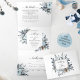 Convite Com Dobra Tripla Casamento Floral Azul com RSVP Tudo em Um