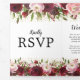 Convite Com Dobra Tripla Casamento Floral Borgonha Foto Tudo em Um