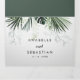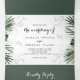 Este convite de casamento floral branco tropical é perfeito para um casamento de destino. A design apresenta palmeiras verdes folhas buquês com flores brancas adoráveis.