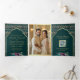 Convite Com Dobra Tripla Casamento Floral Índio Dourado Teal Peacock