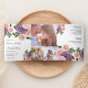Convite Com Dobra Tripla Casamento Floral Rústico Pêssego Púrpura