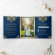 Convite Com Dobra Tripla Casamento índio de Mandala Azul e Dourado