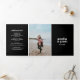 Convites de casamento de três vezes estilo moderno com um layout simples e mínimo com seus nomes em uma fonte retrô de ranhura. Abaixo estão os detalhes de seu evento em uma fonte sans serif junto com seu código QR (opcional) para que os convidados pesquisem e RSVP on-line facilmente. O painel do meio e da direita apresenta uma foto horizontal. No painel traseiro esquerdo está sua placa de gabinete para detalhes adicionais e o painel traseiro médio tem uma foto vertical. O esquema de cores é preto com letras brancas. O código QR pode ser removido e as fontes/cores podem ser alteradas na ferramenta de edição de design.