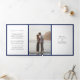 Convite Com Dobra Tripla Casamento Moderno do Monograma Marinho Azul Elegan