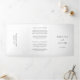 Elegante, tudo em um convite de casamento triplo com um design simples e mínimo. Um layout clássico com seus nomes em letras grandes para uma reviravolta moderna para este convite estilo tradicional. Este design preto e branco pode ser modificado para qualquer cor que você escolher na ferramenta de edição de design. Este convite de casamento é perfeito para um casamento formal.