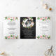 Convite Com Dobra Tripla Casamento Negra De Ferida Floral Rosa-Rosa Magnoli