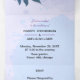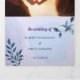 Convite pessoal triplo, com folhas de árvore roxas e estética azul, este esquema de cores é perfeito para casamento, você pode mudar o nome do casal, data e local, todos os detalhes do seu casamento, por favor clique no link "personalização"