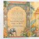 Deixe seus convidados maravilhados com este convite de casamento elegante com tema sul indiano, apresentando belas colunas tradicionais e elementos arquitetônicos vintage decorados com flores de marigold e folhas de bananeira.