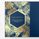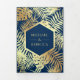 Convite Com Dobra Tripla Casamento Tropical de Palma de Azul marinho e Folh