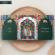 Convite Com Dobra Tripla Casamento Verde com Elefante Folk Indiano