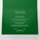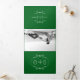 Quadro branco elegante e monograma monograma, convite de casamento verde esmeralda triplo. Mostra suas iniciais em um quadro branco com folhas em verde no cobrir. Os painéis de dentro incluem seu texto enquanto há uma foto no verso externo e a data do casamento no flape externo.