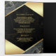 Convite Com Dobra Tripla Cinza de carvão Dourado Marble Ampersand Casamento