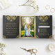 Convite Com Dobra Tripla Cinzas e Casamento Tradicional Dourado de Mandala