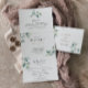 Este clássico verde formal deixa o triplo convite de casamento é perfeito para um casamento rústico. A design apresenta folhas verdes desenhadas à mão com aquarelas, inspirando beleza natural.
