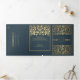 Anuncie seu casamento em estilo com este convite de fantasia medieval triplo! Este convite apresenta uma grande espada de ouro e flores, com uma foto especial do casal contra o fundo da cinza — a combinação perfeita de romance e aventura. NOTA: este design NÃO apresenta folha de alumínio real. A imagem de marcador de posição foi fornecida por Unsplash e NÃO está à venda; substitua-a pela sua fotografia.