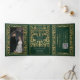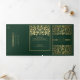 Anuncie seu casamento em estilo com este convite de fantasia medieval triplo! Este convite apresenta uma grande espada de ouro e flores, com uma foto especial do casal contra um fundo verde — a combinação perfeita de romance e aventura. NOTA: este design NÃO apresenta folha de alumínio real. A imagem de marcador de posição foi fornecida por Unsplash e NÃO está à venda; substitua-a pela sua fotografia.