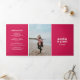 Convites de casamento de três vezes estilo moderno com um layout simples e mínimo com seus nomes em uma fonte retrô de ranhura. Abaixo estão os detalhes de seu evento em uma fonte sans serif junto com seu código QR (opcional) para que os convidados pesquisem e RSVP on-line facilmente. O painel do meio e da direita apresenta uma foto horizontal. No painel traseiro esquerdo está sua placa de gabinete para detalhes adicionais e o painel traseiro médio tem uma foto vertical. O esquema de cores brilhantes é vibrante Viva Magenta rosa. O código QR pode ser removido e as fontes/cores podem ser alteradas na ferramenta de edição de design.