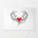 Convite Com Dobra Tripla Coração Anjo Vermelho com asas