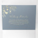 Eleve a celebração do seu casamento com este convite triplo elegante em azul empoeirado e floral dourado. Com um design floral sofisticado com detalhes dourados luxuosos, uma seção de foto personalizável e um formato conveniente 3-em-1, este convite é perfeito para casais que buscam um toque glamoroso e personalizado. Personalize facilmente com seus detalhes.