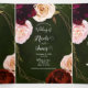 Convite Com Dobra Tripla Esmeralda Verde Dourado Escuro Floral Casamento Tr